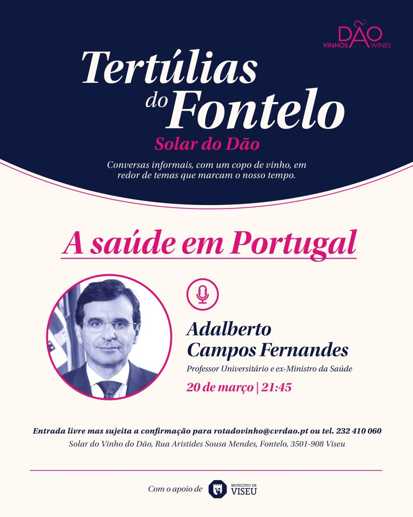 Arranca a 20 de março, no Solar do Dão, o ciclo “Tertúlias do Fontelo”, um novo palco de debate e reflexão que junta figuras nacionais de referência e temas fraturantes da atualidade. “A Saúde em Portugal”, conduzida por Adalberto Campos Fernandes, é a primeira iniciativa.